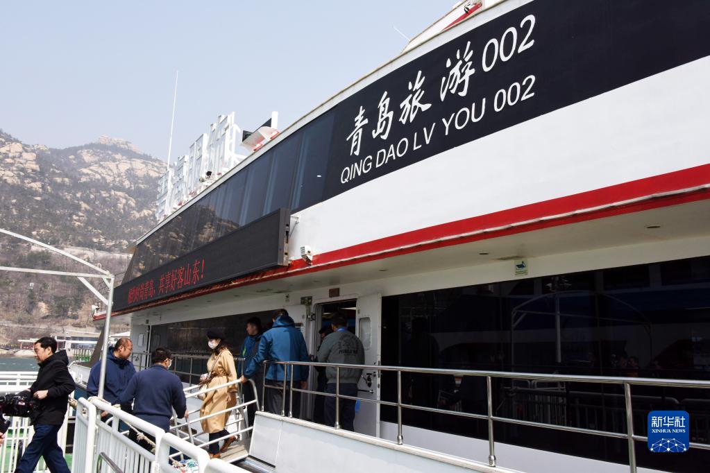 3月27日,在青島嶗山包養網太清游船船埠,游客下包養船包養金額預備游覽包養網嶗山。